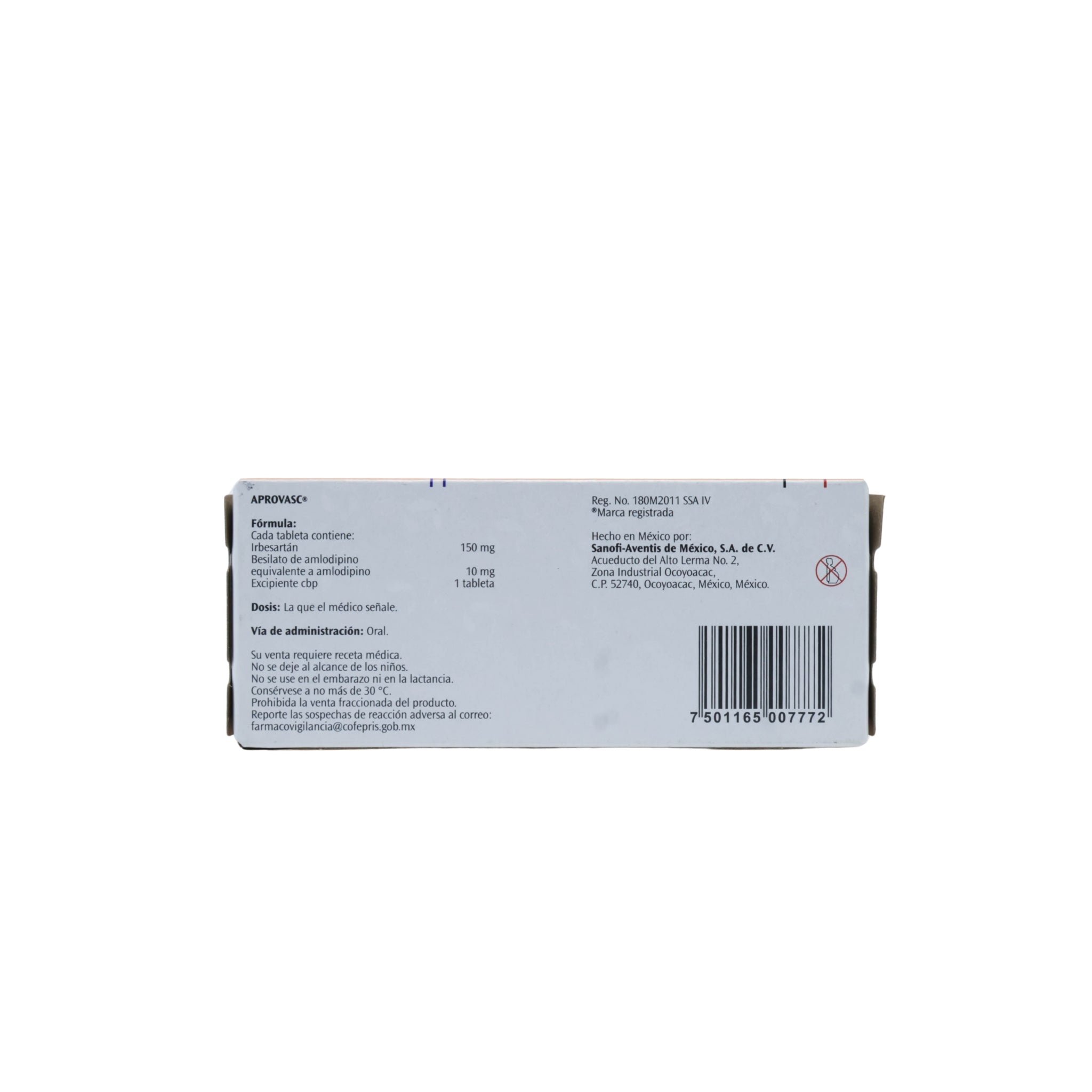 | Aprovasc | Irbesartán / Amlodipino | Tabletas (28) | Control de la hipertensión | Una vez al día | Sí |