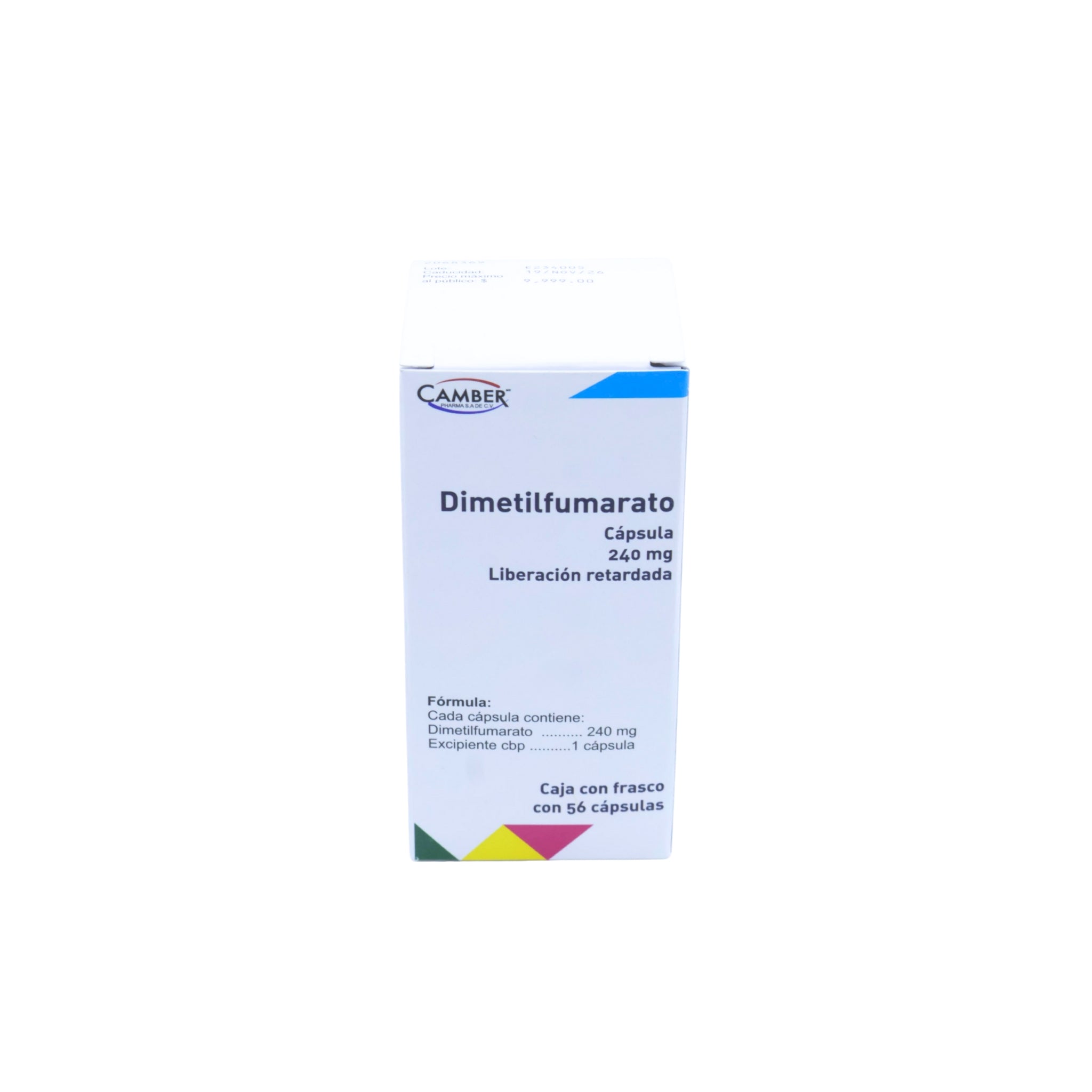 Dimetilfumarato 250 mg es un medicamento inmunomodulador indicado para el tratamiento de la esclerosis múltiple remitente recurrente (EMRR). Su principio activo, dimetilfumarato, ayuda a proteger las células nerviosas del daño causado por la inflamación y el estrés oxidativo.