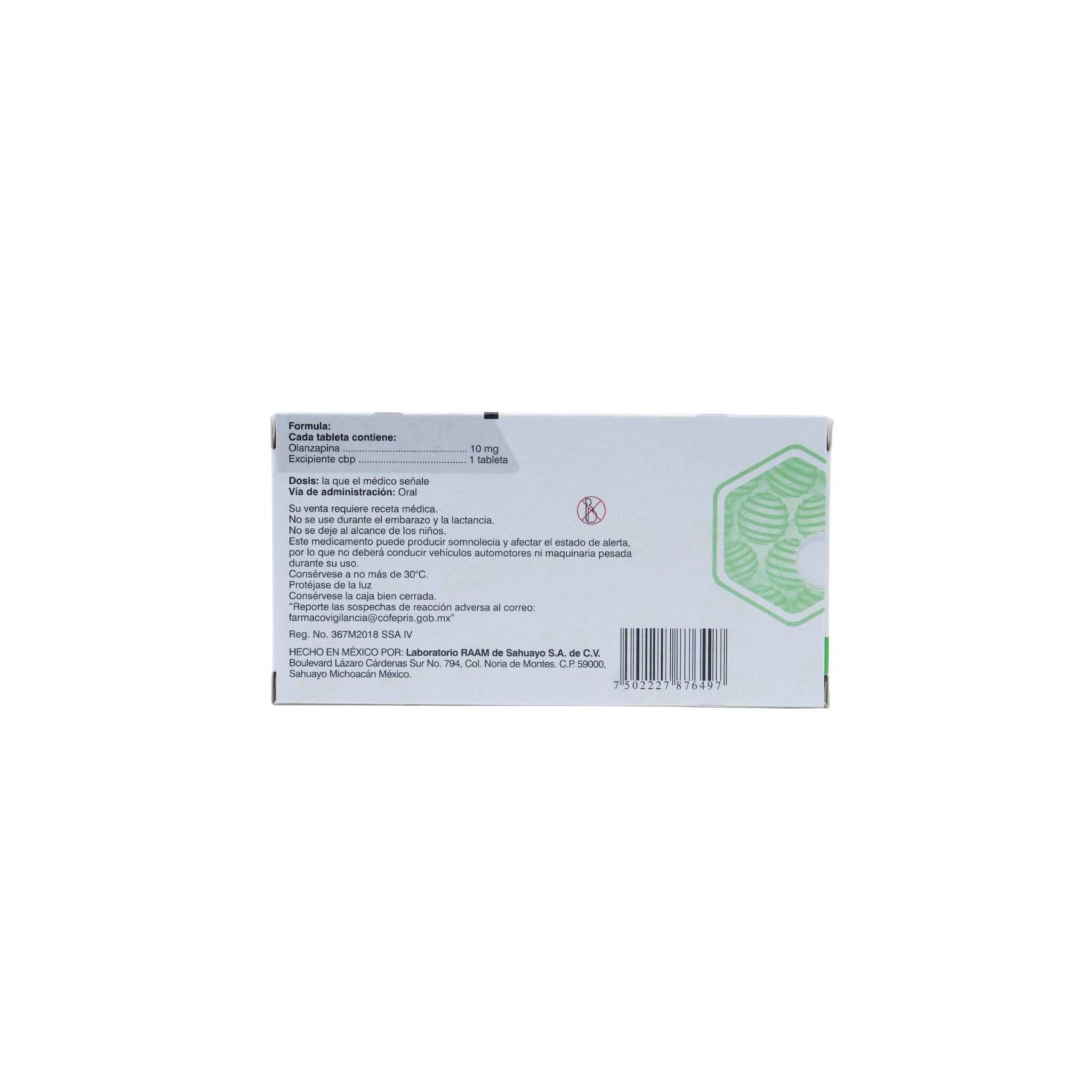 Fabricado por Laboratorios RAAM, Eflecon Olanzapina 10 mg cuenta con registro sanitario 367M2018 SSA-IV, cumpliendo con los estándares de calidad y seguridad establecidos por COFEPRIS.