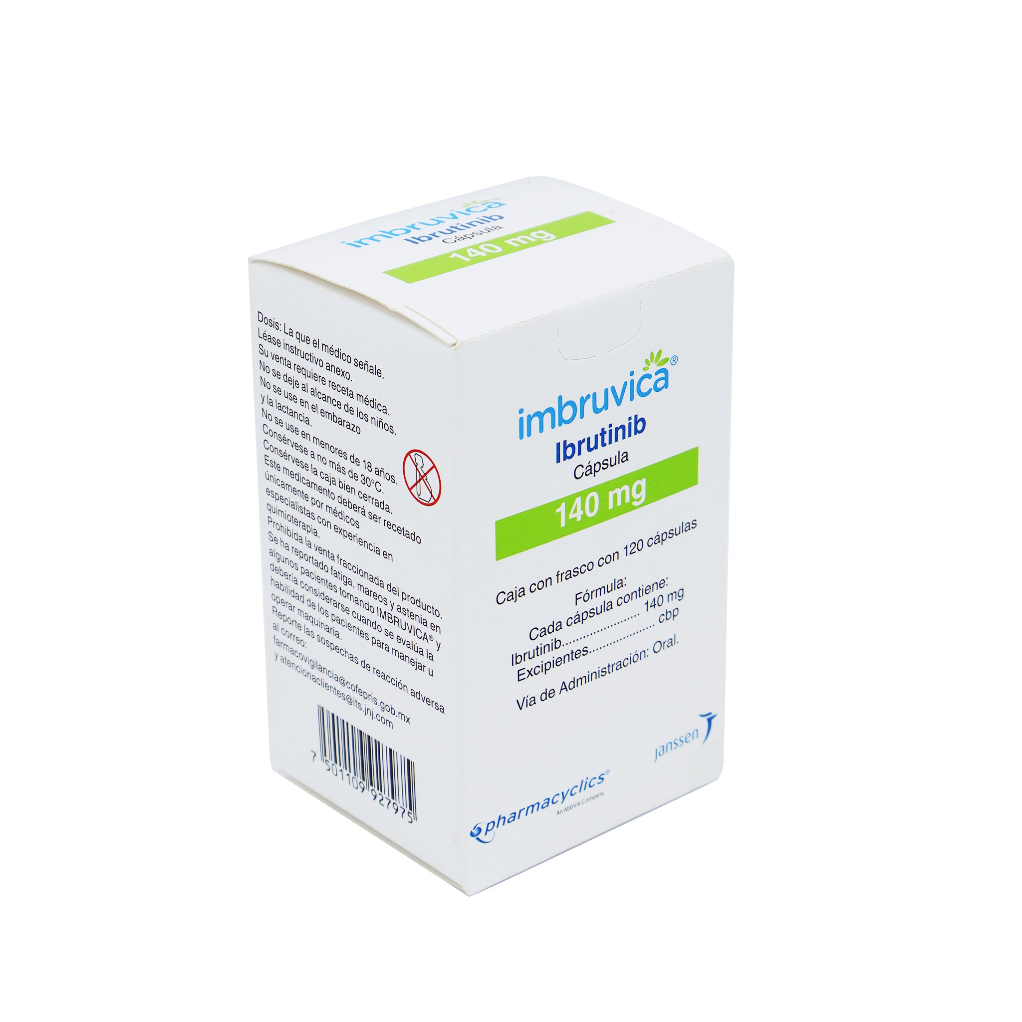 Imbruvica 140 mg está indicado para el tratamiento de leucemia linfocítica crónica, linfoma de células del manto y macroglobulinemia de Waldenström.