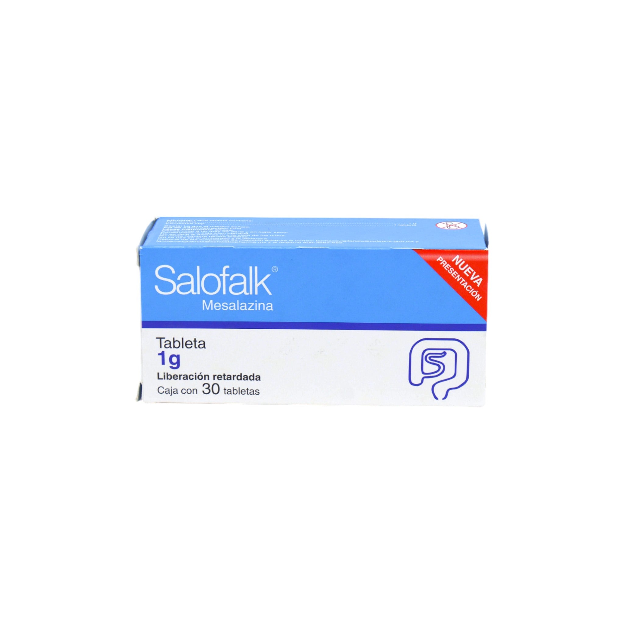 Salofalk Mesalazina 1 g, 30 tabletas es un medicamento antiinflamatorio intestinal indicado en el tratamiento de colitis ulcerosa y otras formas de enfermedad inflamatoria intestinal (EII). Se utiliza tanto en la fase activa de la enfermedad como para mantener la remisión y prevenir recaídas.