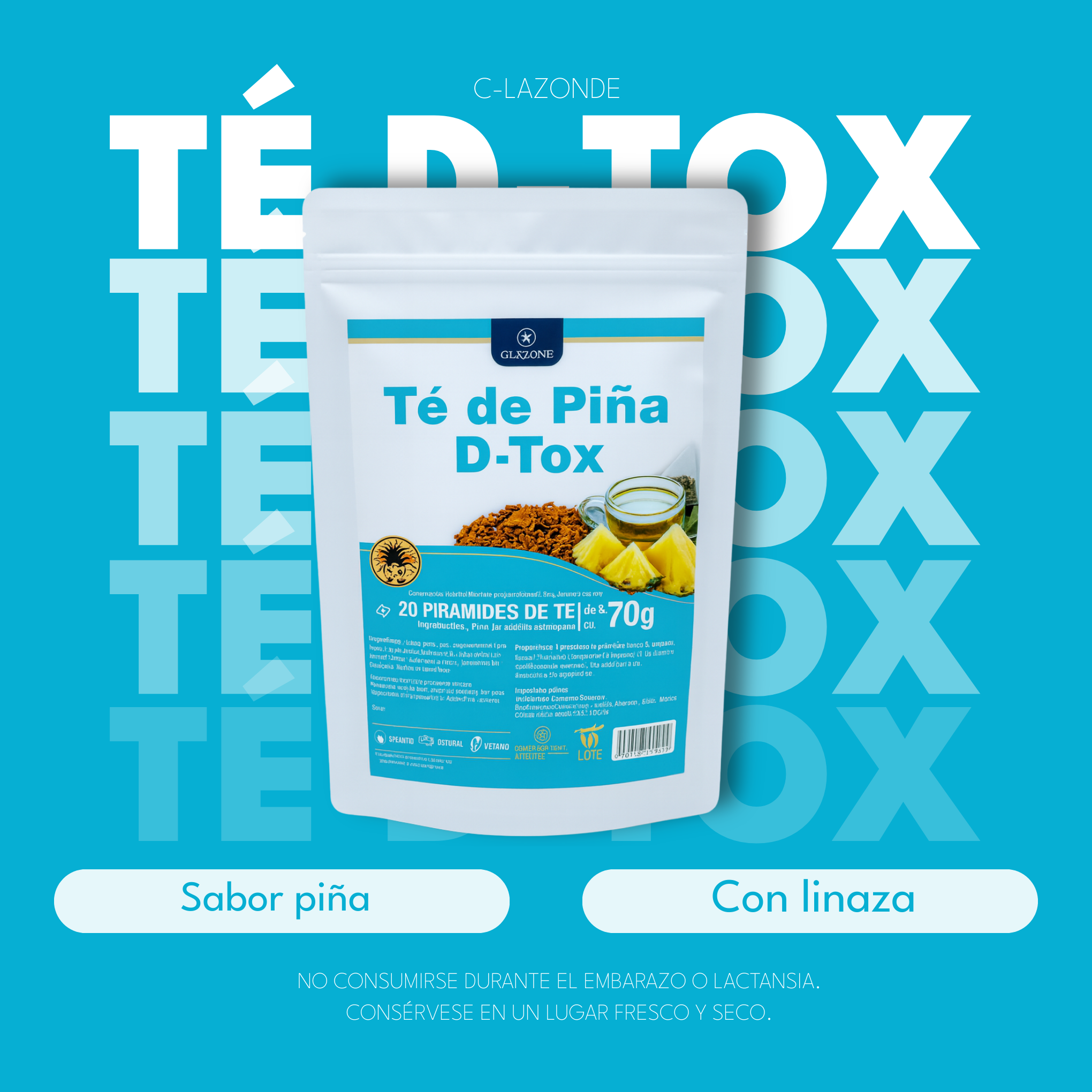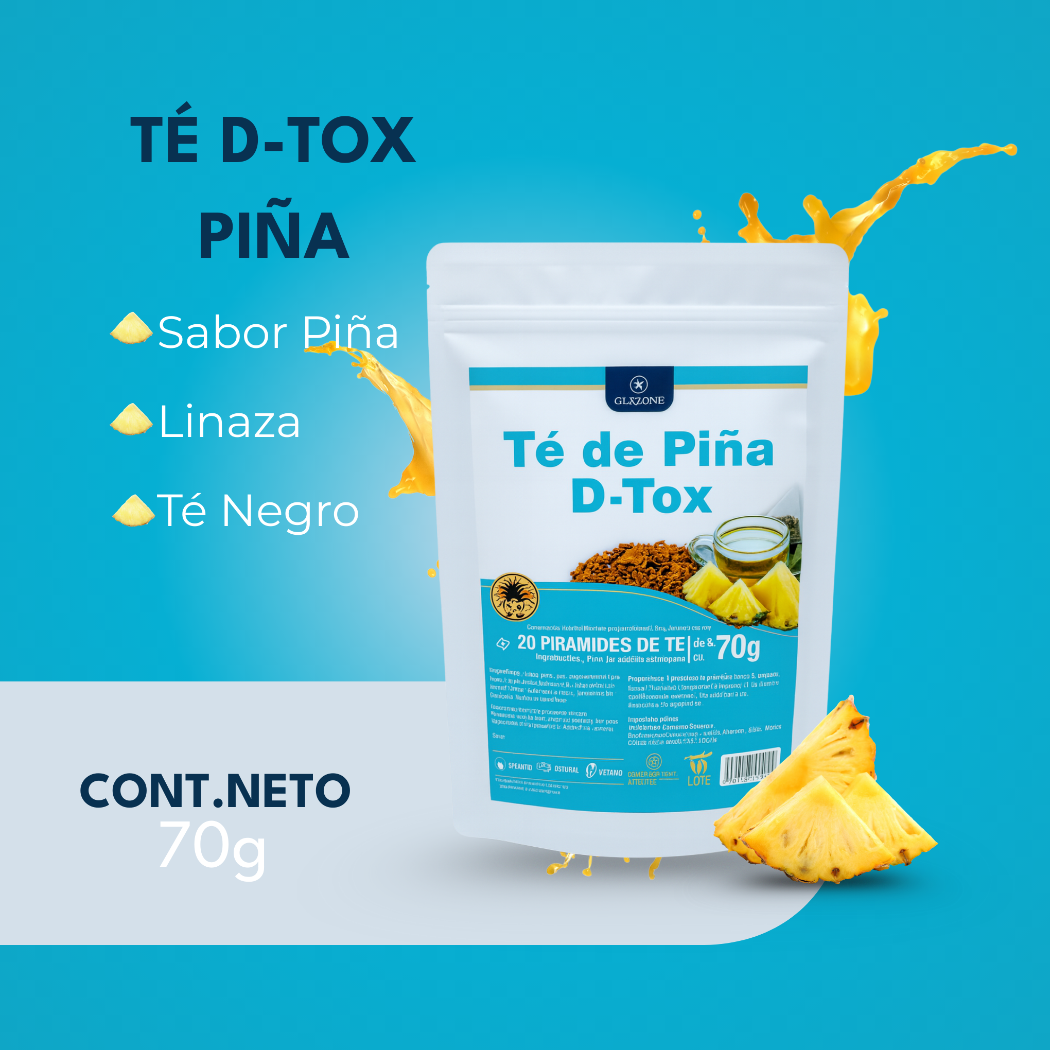 Té D-Tox Piña C-Lazonde es una infusión natural elaborada con té negro, linaza y sabor piña, ideal para promover la digestión y eliminar toxinas de forma natural. Su mezcla antioxidante y su sabor tropical te ayudan a mantenerte ligero y con energía.